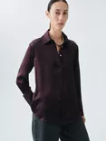 Adriana Pure Silk Satin Shirt, Medium Brown
