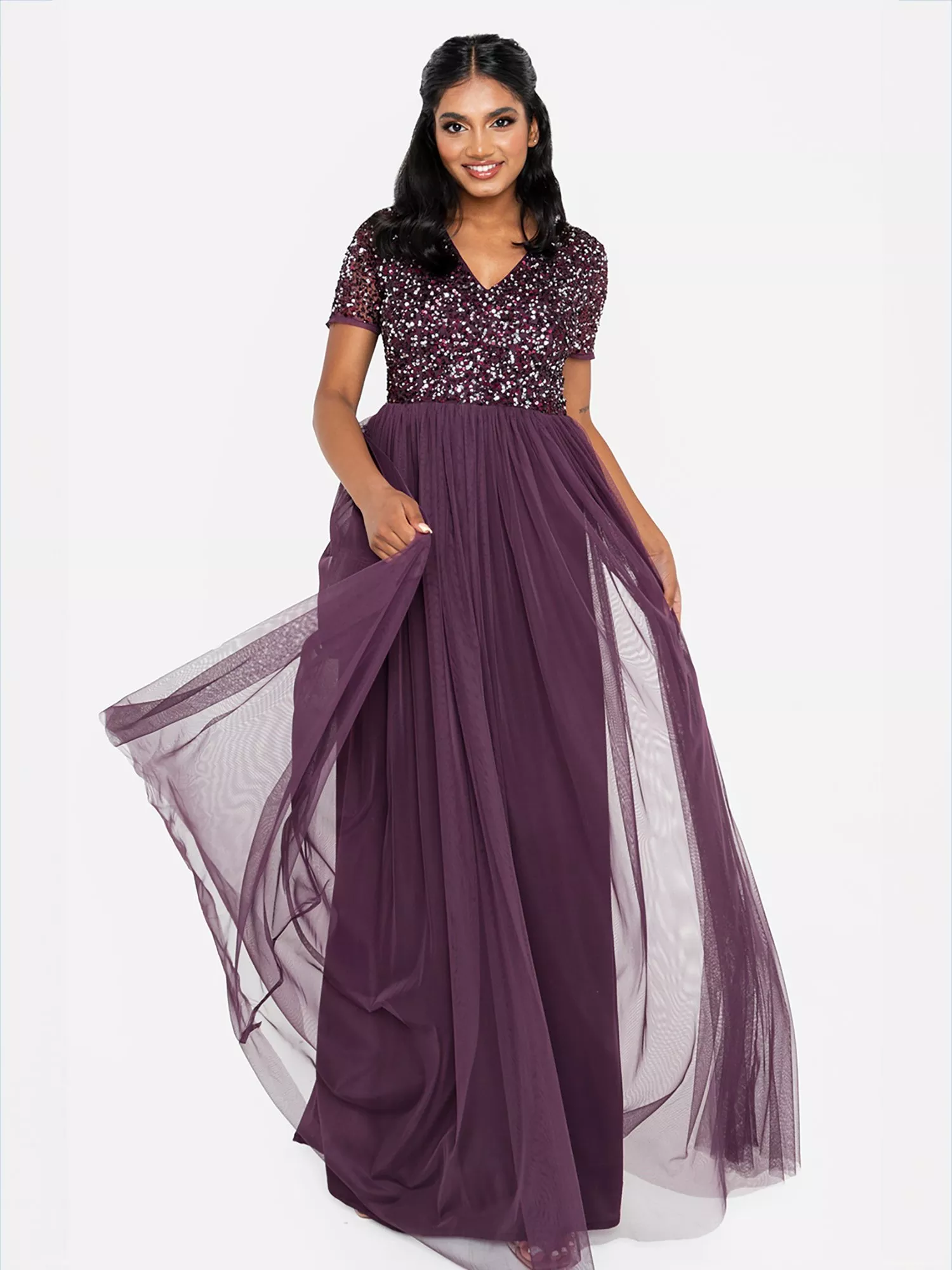 Maya Deluxe V-Neck Embellished Sequin Maxi Dress