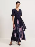 Phase Eight Abigail Floral Pleat Dress, Navy