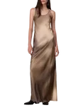 Daisy Satin Bias Cut Maxi Dress, Brown/Multi