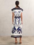 Reiss Gemma Scarf Print Midi Dress, Blue/Brown