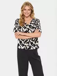 Saint Tropez Kirby Leopard Print Frill Sleeve Top, Creme/Multi