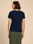White Stuff Textured Yarn V-Neck Jumper, Mid Blue