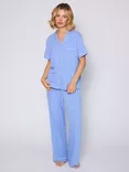 Loungeable Ribbed Traditional Long Pyjama Set, Blue