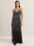Phase Eight Alexia Sequin Dress, Black/Silver