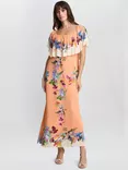 Samantha Floral Off Shoulder Frill Dress, Orange/Multi