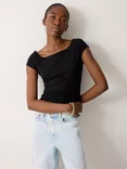 Jigsaw Boat Neck Cap Sleeve Jersey Top, Black