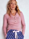 Boden Henley Frill Pyjama Top, Light Pink Marl