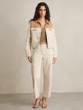 Reiss Maddie Contrast Waist Straight Leg Jeans, Ecru