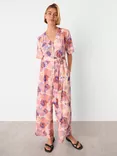 Whistles Floral Button Front Jumpsuit, Pink/Multi