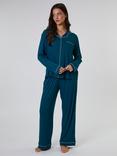 Loungeable Ribbed Traditional Long Pyjama Set, Green