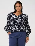 KAFFE Curve Calicia Floral Top, Marine/Multi