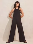 Ro&Zo Wide Leg Halterneck Jersey Jumpsuit, Black