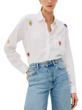 Rails Charli Linen Blend Embroidered Shirt, White/Multi