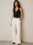 Reiss Analise Belt Detail Pure Linen Trousers, White