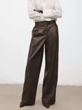 Mango Riga Faux Leather Trousers, Khaki
