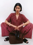 HUSH Geometric Revere Collar Shirt, Dark Red/White