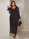 Live Unlimited Curve Bell Sleeve Crochet Midaxi Dress, Black