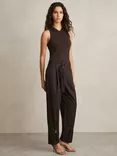 Reiss Molly Zip Tapered Trousers, Chocolate Brown