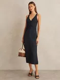 Reiss Pari Sleeveless Midi Dress, Navy, Navy