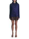 James Lakeland Satin Long Sleeve Shirt, Dark Blue