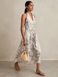 Reiss Carla Palm Print Halterneck Dress, Neutral