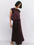 HUSH Satin A Line Maxi Skirt, Fudge Brown