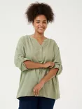 KAFFE Curve Vitana Frill V-Neck Top, Oil Green