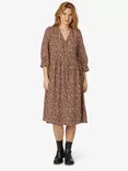 Camille Ditsy Floral Print Midi Wrap Dress, Navy/Brown