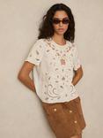 Reiss Iyla Short Sleeve Floral Cut Out Embroidered Top, Ivory