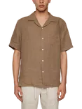 J.Lindeberg Elio Linen Regular Fit Revere Collar Shirt, Mid Brown