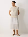 Jigsaw Gauze Sleeve Round Neck Cotton Jersey Top