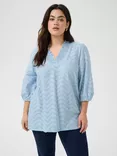 KAFFE Curve Vitana Frill V-Neck Top, Soft Chambray