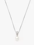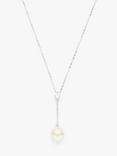 Lido Pearls Triangular Cubic Zirconia and Freshwater Pearl Pendant Necklace, Silver/White