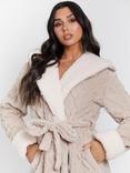 Loungeable Borg Button Lounge Hooded Cardigan, Mink