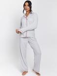 Loungeable Ribbed Traditional Long Pyjama Set, Blue