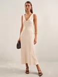 Reiss Kiera Textured Drape Midi Dress, Cream