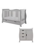Obaby Stamford Luxe Sleigh Cotbed & Changing Unit Set, Warm Grey