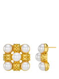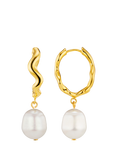 Orelia Oval Wave Drop Hoop Earrings, Pearl