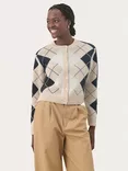 Lylah Argyle Wool Blend Cardigan, French Oak/Multi