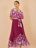 Yumi Mirrored Floral Pleated Dress, Burgundy