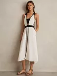 Reiss Valencia Cross Back A-Line Midi Dress, Ivory/Black