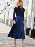 Sosandar Pleated Satin Midi Skirt, Navy Blue
