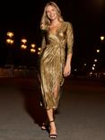 Sosandar Metallic Plisse Midi Dress, Gold