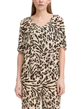 ICHI Marrakech Leopard Print V-Neck Top, Caribou/Multi