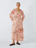 John Lewis Botanical Print Tie Detail V-Neck Maxi Dress, Pink