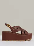 Reiss Naomi Leather Flatform Strappy Sandals, Brown