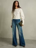 Reiss Ella Crew Cropped Wool Rich Jumper, Cream
