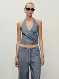 Mango Blanes Stripe Halterneck Top, Medium Blue