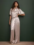 Mint Velvet Metallic Wide Leg Trousers, Gold